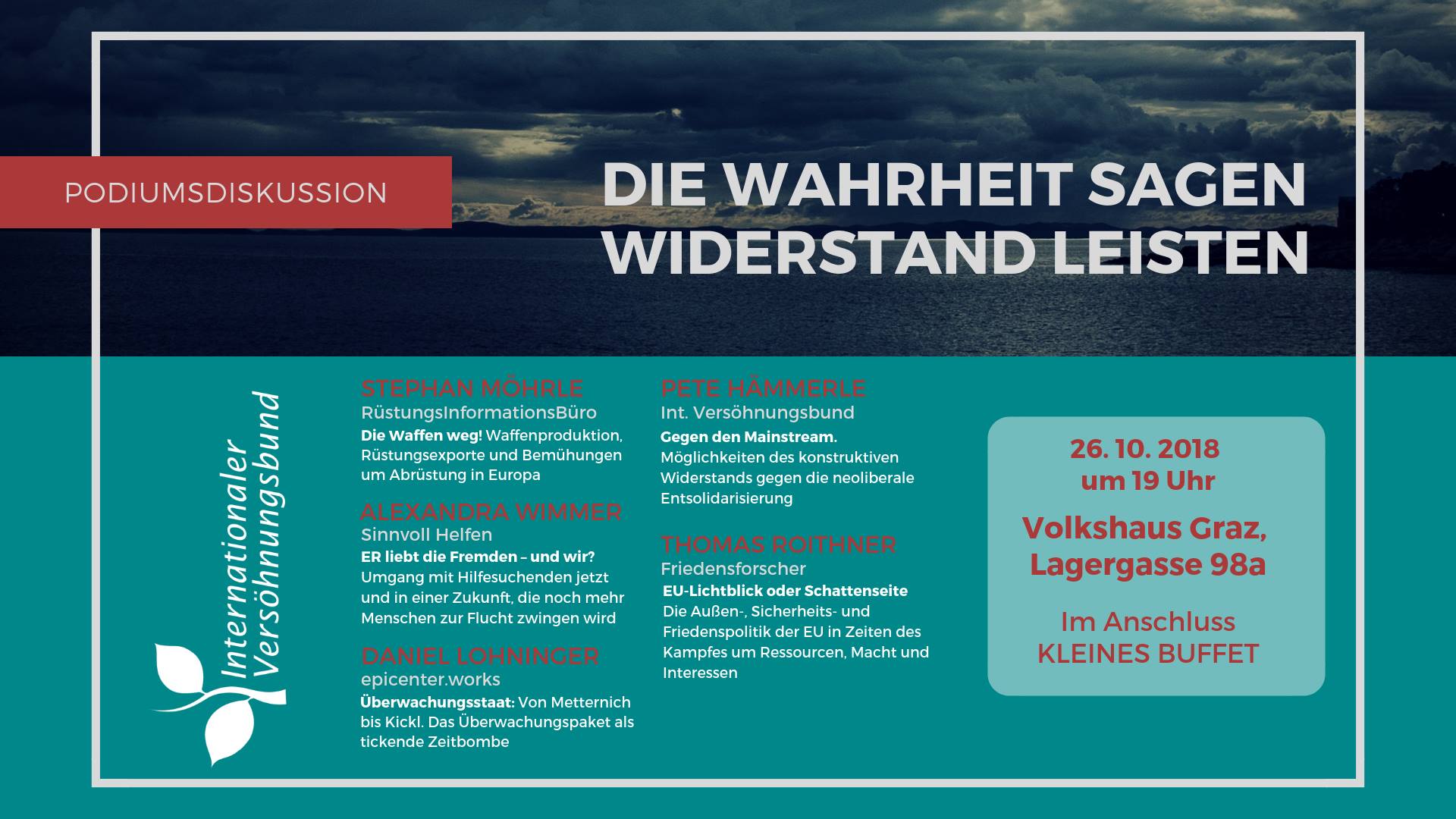 Podiumsdiskussion "Die Wahrheit sagen – Widerstand leisten - Möglichkeiten einer konstruktiven Friedensarbeit angesichts des politischen Klimawandels"Im Rahmen der Dreijahrestagung des Internationalen Versöhnungsbund. ![]() |